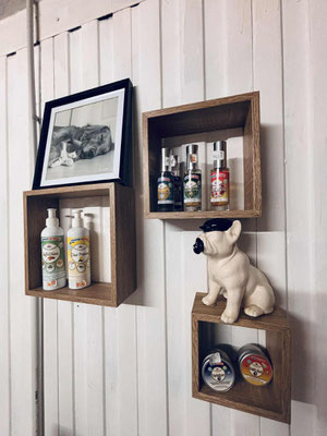 Une gamme d'accessoires, jouets, friandises, selleries, shampoings, et parfum est proposés dans l'espace vente dédiée, au salon de toilettage pour gâter votre compagnon.